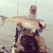 The air quality was beginning to diminish due to an uncontrolled fire at the Anahuac Wildlife Refuge. The smoke drifted over the bay and created an orange glow on the horizon. It made the hour seem later than it was. A power boat came in to fish with me, and to my surprise, it was the father of a player I had coached. I always enjoy catching up on the activities of explayers and their families. We visited for a few minutes and said goodbye as the sun got closer to the horizon. On my paddle back, I noticed some bird activity on the shoreline where I saw all the shrimp earlier. When I got within casting distance, I thought these were flounder feeding in the shallow water. On my first cast, a large wake turned and headed for my offering. Before I had a chance to reel up the slack, an explosion displaced a large amount of water directly under my lure. I set the hook, and my drag started screaming as the fish left a super sonic wake as it sped by my kayak. After two hard runs and a short sleigh ride, the 27-inch, 8-pound redfish slid slowly into my net. What a great way to end the day!
